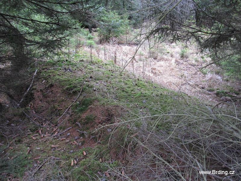 Podobná situace je na místě bývalé pily.Tady je k nalezení jen malá stopa v podobě rozbořené zídky a betonového soklu v houštině náletových dřevin, tedy přetěžká představa místní situace z let 1941-42 (viz.2.foto). Musíme tedy do lesů a doufáme, že tam nám bude přát štěstí o malinko víc. Míříme k rozlehlejšímu severnímu kmenu a už v JV svahu vrchu Záborčí nacházíme první stopy drážního tělesa. Zpočátku méně výrazné, ale v místech odklonu větve S-1 už velmi snadno rozpoznatelné. Další úspěch zaznamenáváme asi o 2 km dále a to v místě odklonu větve S-2, kde nacházíme pěkně zachovalou část náspu přerušenou korytem Ledného potoka (viz.3.foto).