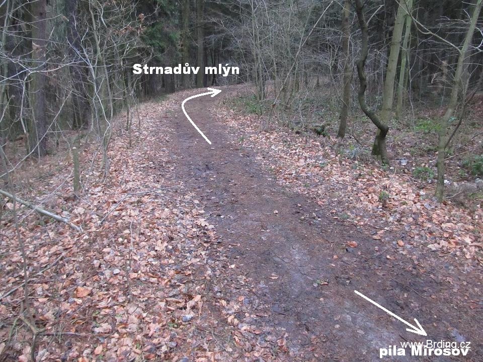 Jsme spokojeni,máme v ruce "opravdový" důkaz o existenci dráhy :-). Pokračujem cestou dál podél Skořického potoka směrem k Mirošovu a i tady je možno pohodlně sledovat původní trasu koleje severního kmene, který pak pokračoval přes louku a myťskou i skořickou asfaltku do pár desítek metrů vzdálené pily. Viditelné těleso dráhy zaniká zároveň s hranicí lesa a v těsném sousedství prvního mirošovského stavení. Zde rovněž končí naše pátrání po této historické technické památce. A končí více než symbolicky - v oplocení pozemku vidíme několik kolejnic právě z této železničky.