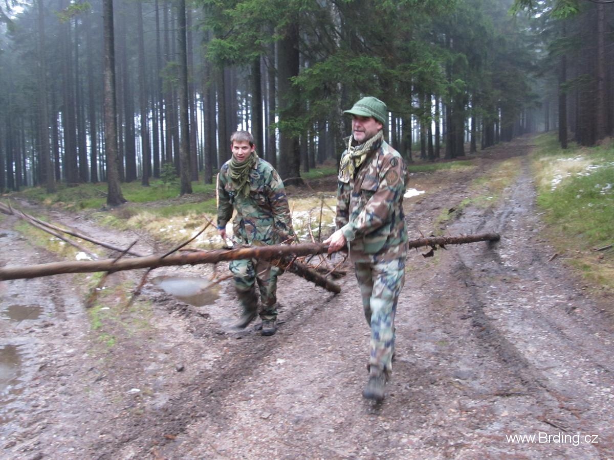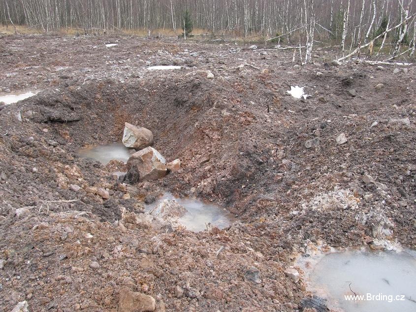 Po trochu nudném úseku, který vedl po silnici se blížíme k bývalému tankodromu na Bahech. Tady na nás čekalo další zpestření a to v podobě pěkně mazlavého bahna. Hned jsme pochopili jak vzniklo pojmenování tohoto místa. Lesem to obejít nešlo, ten byl podmáčený, tak nám nezbývalo nic jinýho než to vzít přímo. Brdy se s náma rozloučily opravdu stylově.