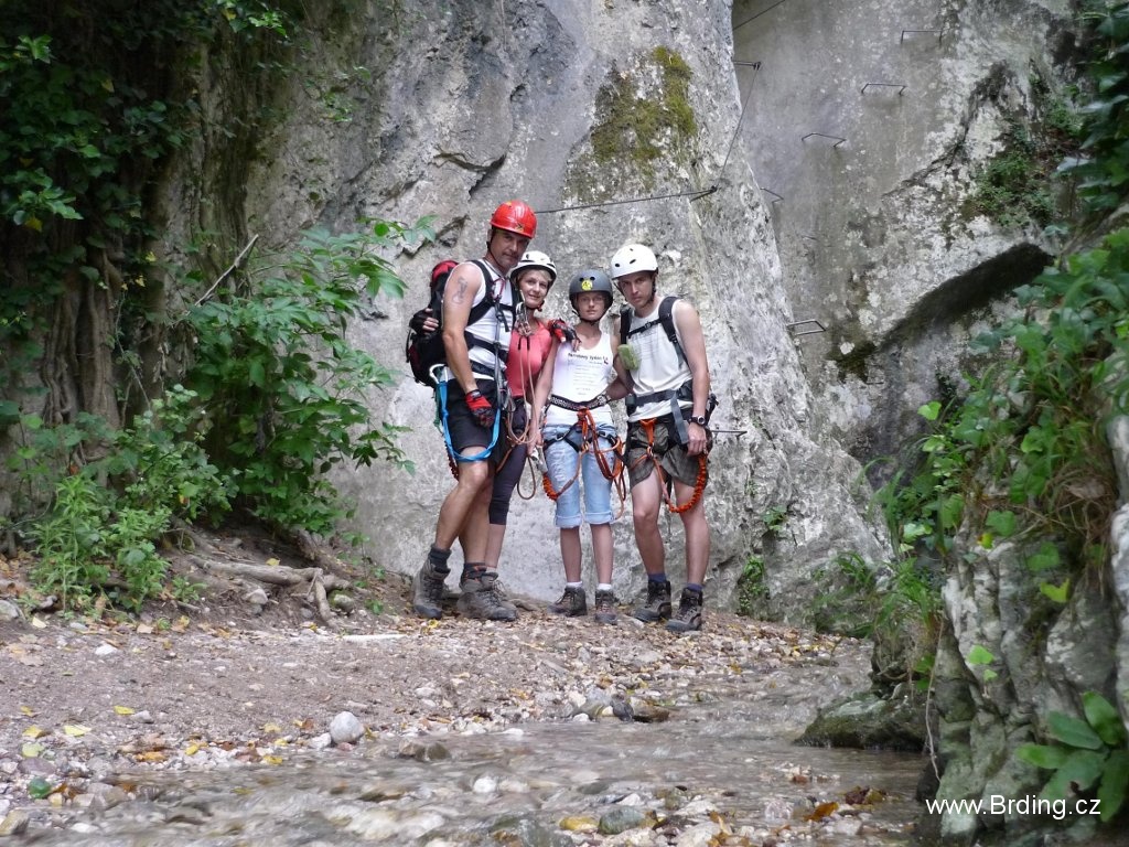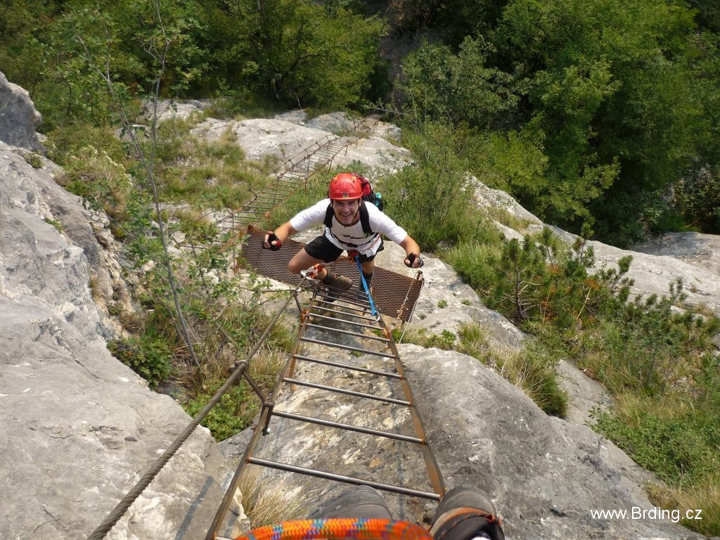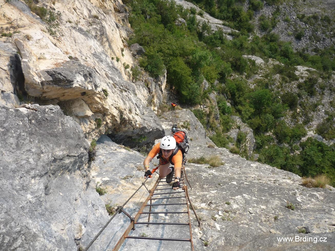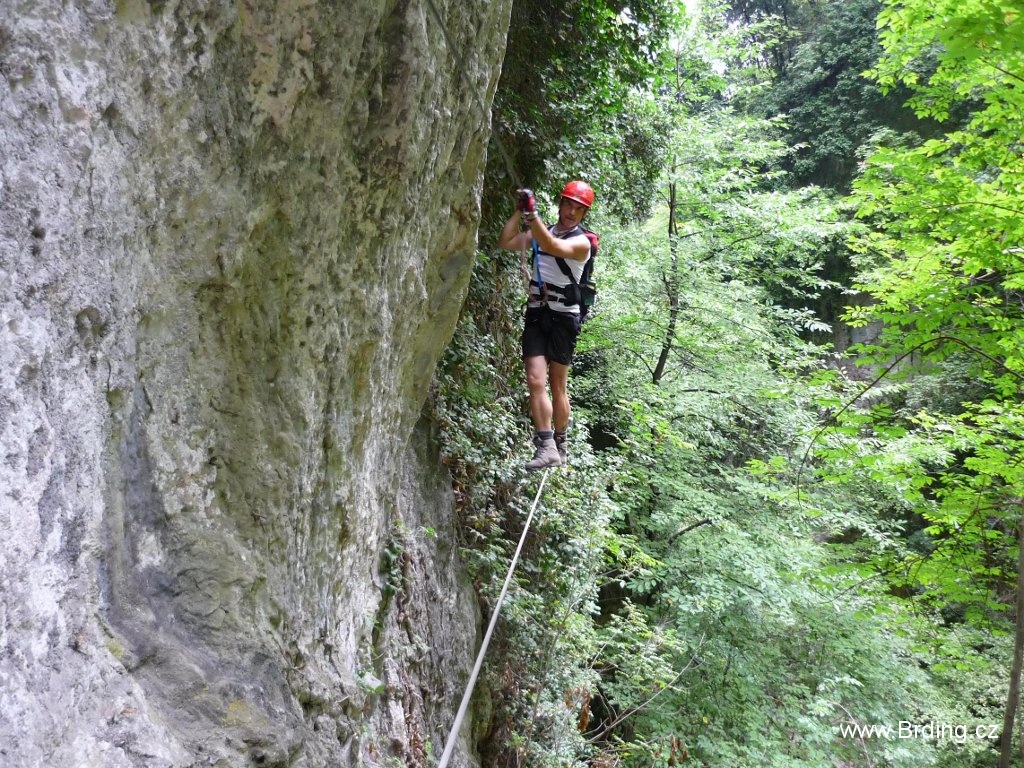 Třetí den se opět přesouváme za Arco, tentokrát pod vesničku Drena, kde kaňonem říčky vede ferata Rio Salagoni, s obtížností C a dvěma těžšími pasážemi.