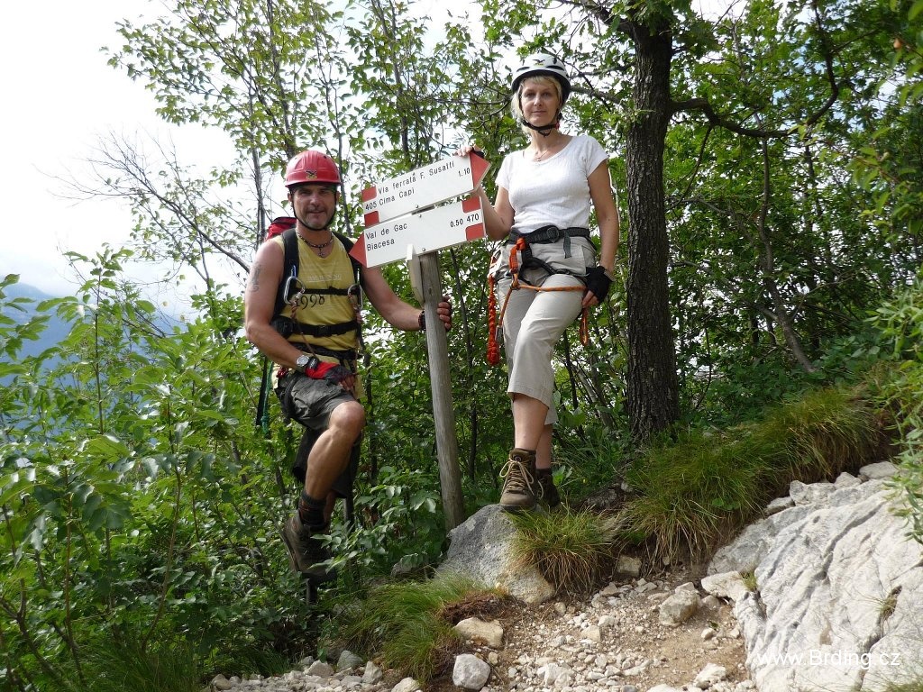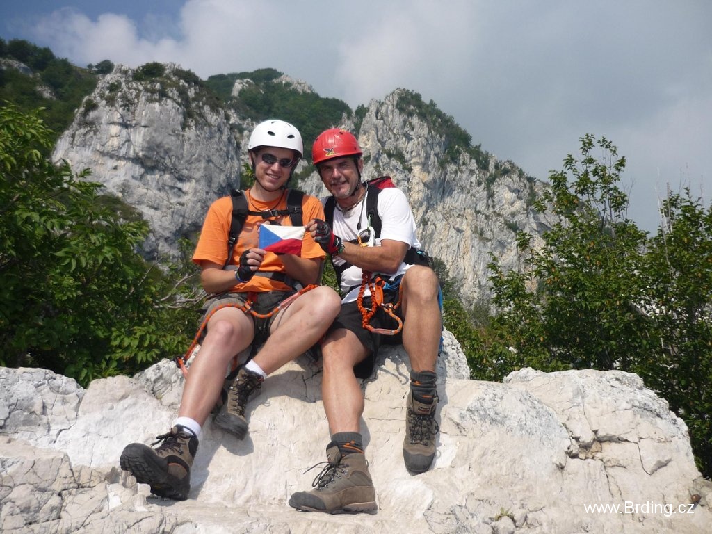 Ještě první den se jdem rozvičit na lehčí kopec, kde je nad Arcem ferata na vrchol Colodri a její obtížnost je B. Pro seznámení se se zdejším terénem a aklimatizaci akorát.