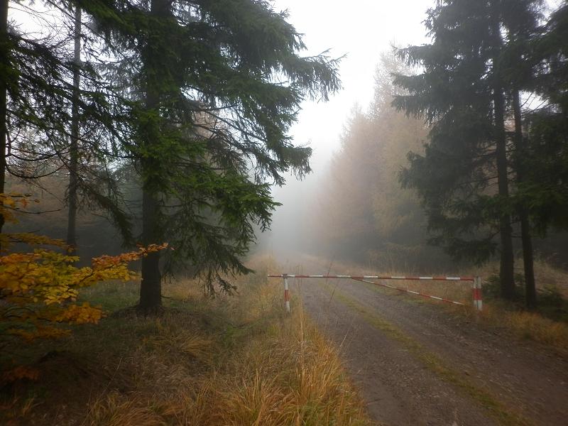 V posledních dnech nepršelo, tak se někde "něco" musí upouštět, uvidíme. Až ke Třem Trubkám nám počasí zatím přeje, ale při stoupání na Roviny se to horší,slunce marný boj vzdává a nahoře už se opět povaluje mlha.
