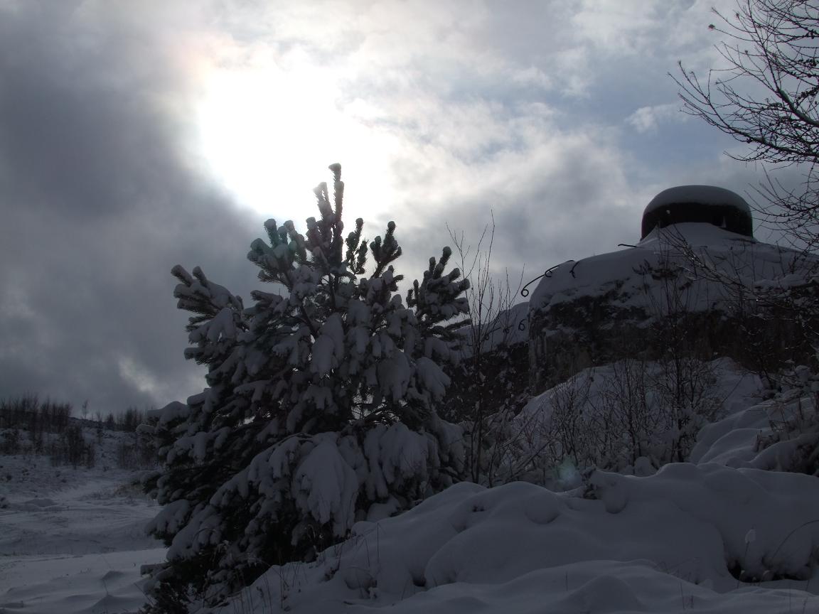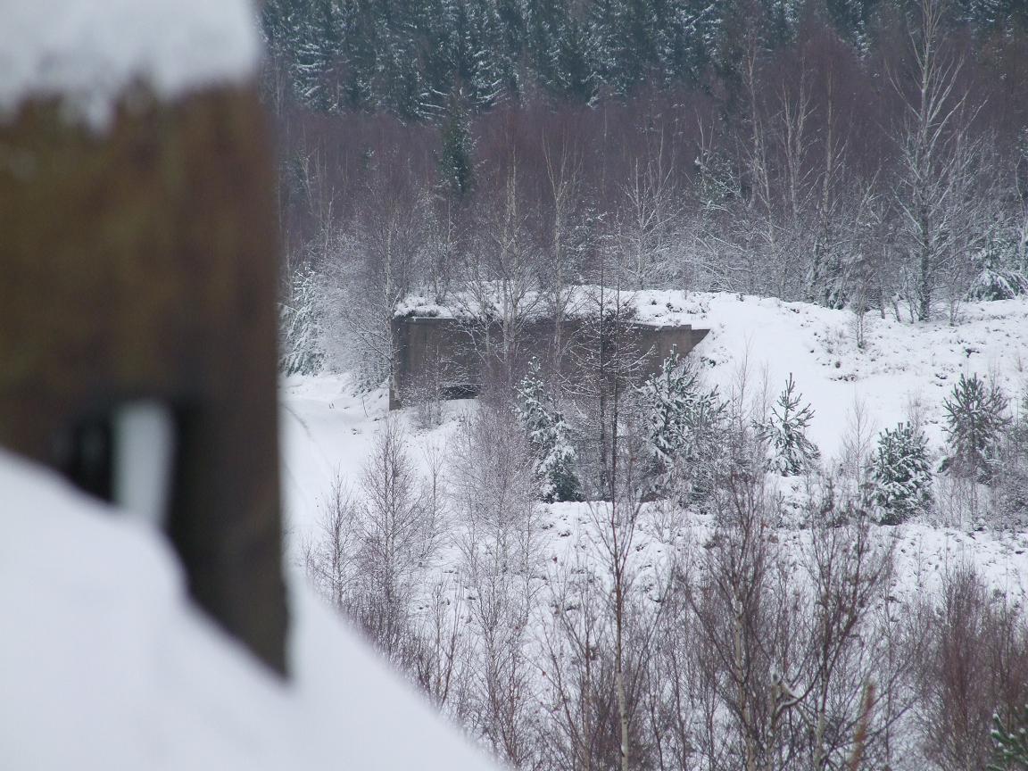 Míjím letiště (tady mám v plánu se zastavit až při zpáteční cestě) a lesem a sněhem se pomalu prodírám k Jordánu. V těchto místech už leží na zemi dobrých 30 cm nového sněhu a tak než vylézám u první pixle, docela se zapotím. Nakouknu dovnitř, udělám pár fotek a pokračuju o kousek výš, k "CEčku". Tady s překvapením zjišťuju, s jakou drzostí a hlavně rychlostí mizí z Brd všechno co je ze železa! Vstupní ocelovou mříž i část vnitřní vzduchotechniky někdo odmontoval. Tak počítám, že se ještě vrátí pro železné zábradlí a těch pár kousků plechů, co tu zbyly. Ocelové pláty na stěnách už taky nesou známky pokusu o odstranění.
