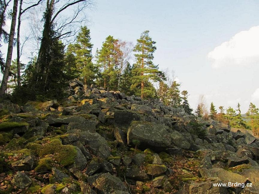 Nakonec se podařilo a po chvilce hledání se před náma z ničeho nic objevuje nezalesněný svah pokrytý velikými balvany, podobný tomu na jižním svahu Prahy. Je nám jasné, že přímo to určitě nahoru nepůjde, tak se rozhodujem toto kamenné moře obejít zleva, tam není svah tak příkrý.