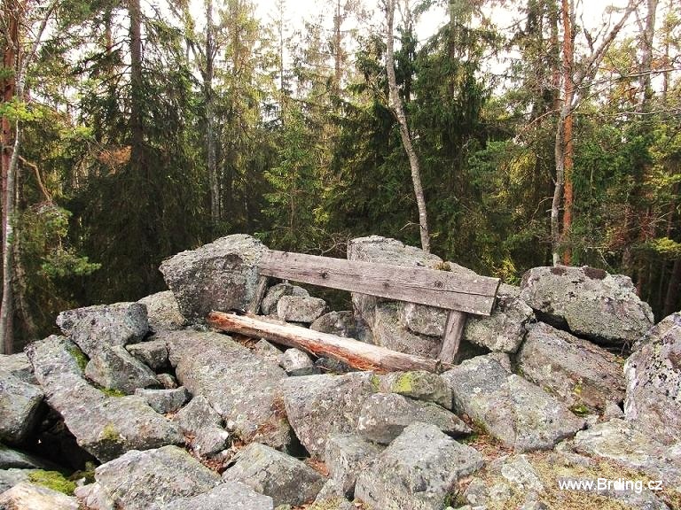 Cesta nic moc, občas někdo z nás zakopne nebo podklouzne, ale za chvilku jsme kousek pod vrcholem a tady na nás čeká milé překvapení. Z lesa sem vede nenápadná upravená pěšina a poslední desítky metrů k vrcholové výhlídce jdeme po pěkně vyskládaném kamenném chodníku.