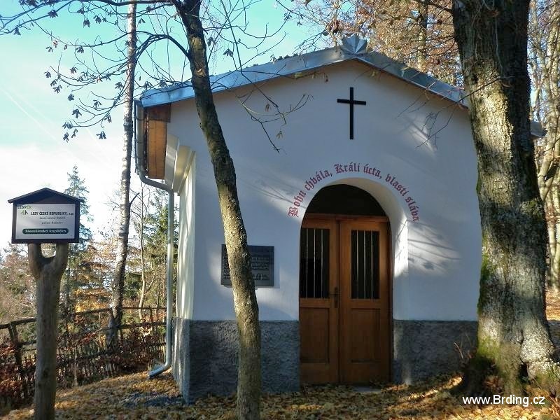 Čtyřmi ostrými zatáčkami se dostáváme na rozcestí u Třemšínské boudy. Ta je velice pěkně zrenovovaná a slouží jako kaplička a zároveň i jako útulna pro turisty, je tedy volně přístupná. Uvnitř najdete lavice, stůl, kamna a přestože je otevřená, nic zde není poničeno. Na české poměry malý zázrak!