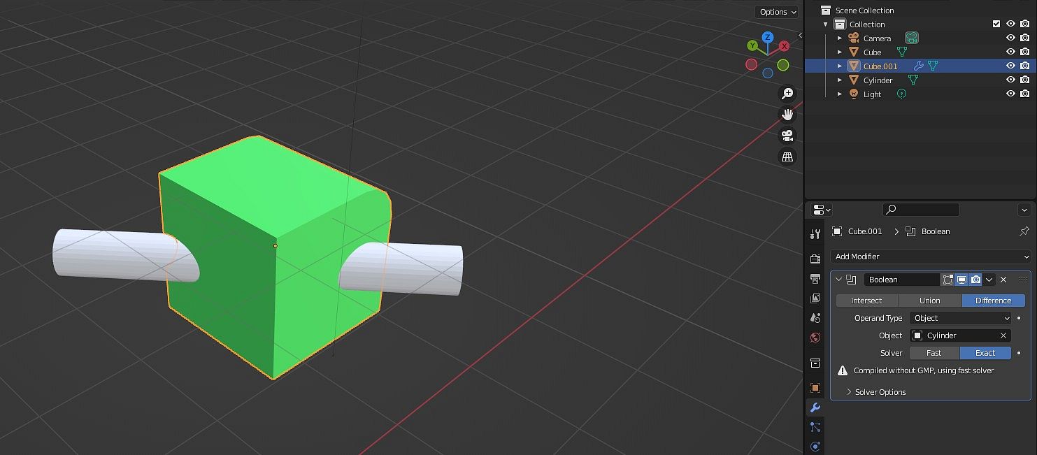 protneme např. válec s krychlí a Cube > Add Modifier > Boolean