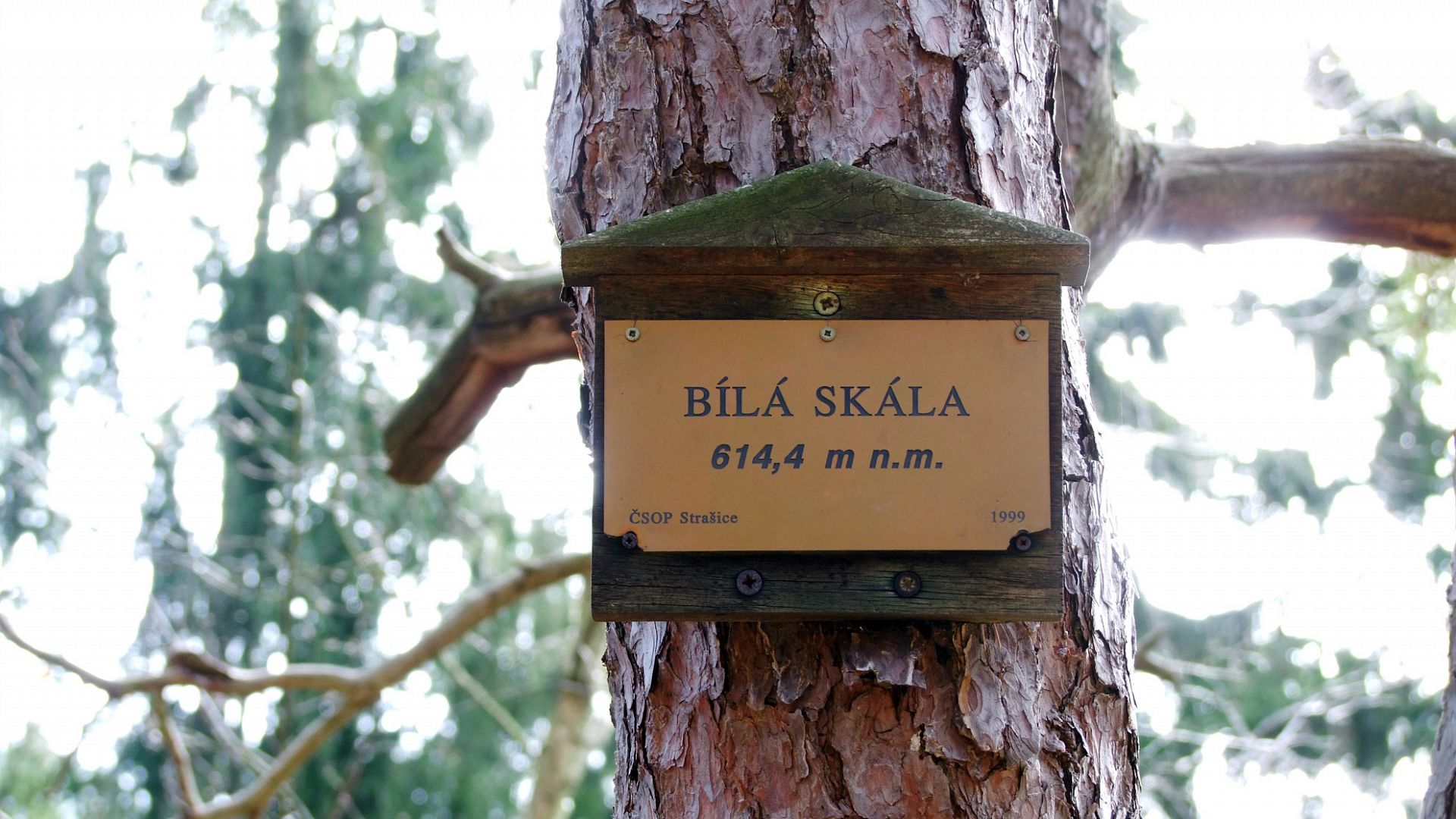 Bílá skála je vrch vysoký 614 m n.m. Na vrcholu nalezneme pěknou skalku s borovým lesem, bez výhledu, snadný přístup.