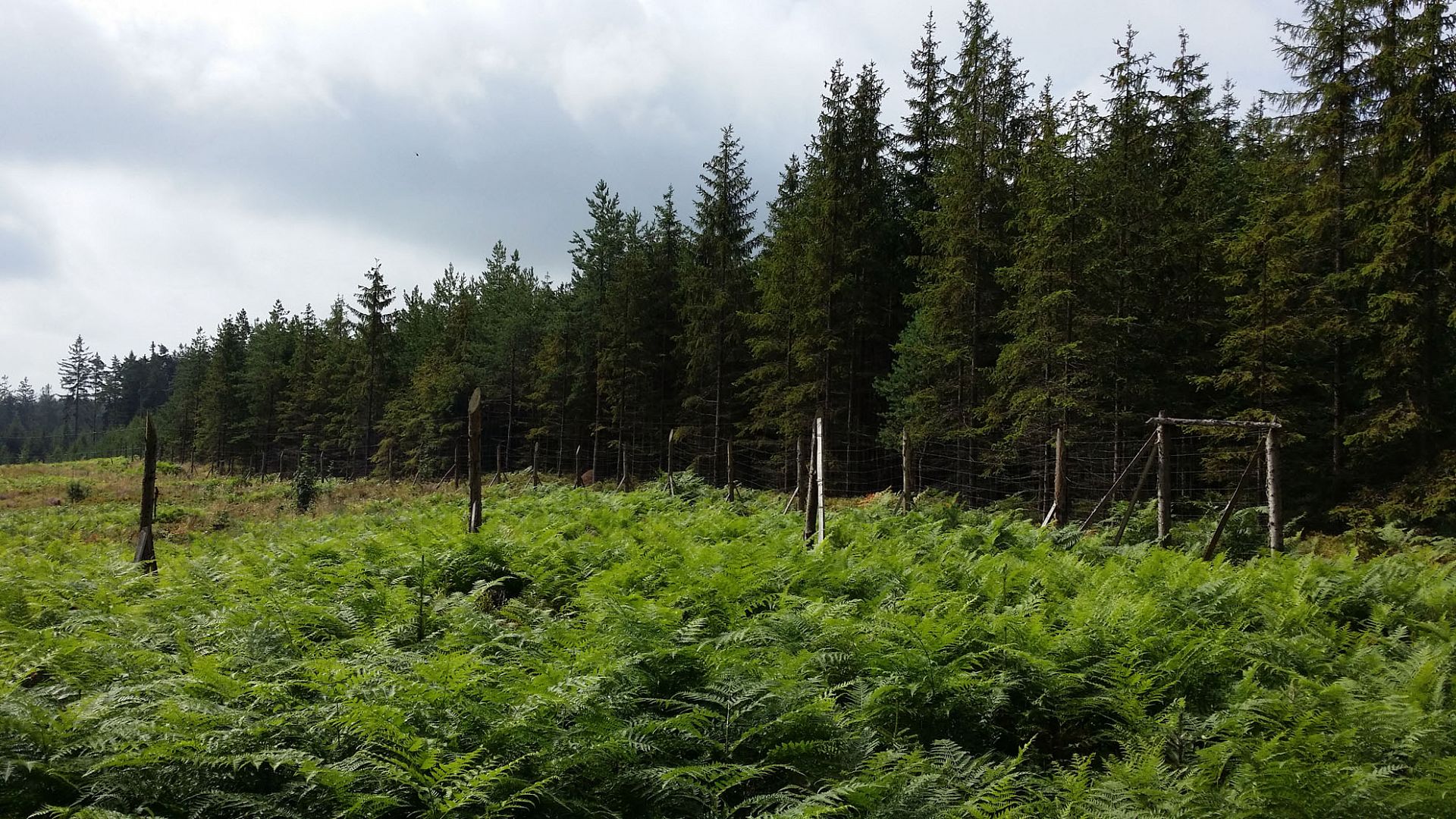 Plešec je vrchol vysoký 786 m n.m. na okraji Středních Brd vzdálený 1 km od obce Zalány. Fotografie je z východního svahu.
