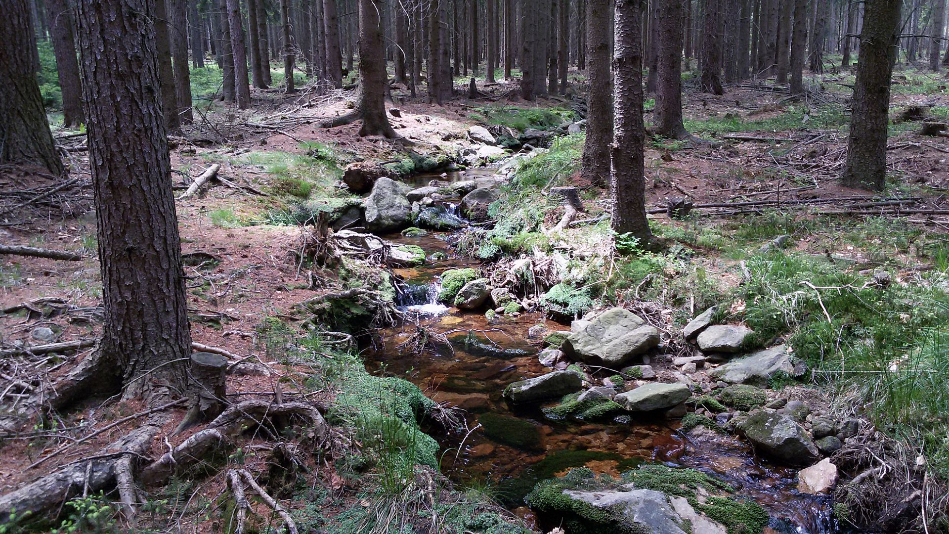 Albrechtický potok pramení v JV svahu vrchu Tok (U Můstku). V Obecnici se vlévá do Obecnického potoka.