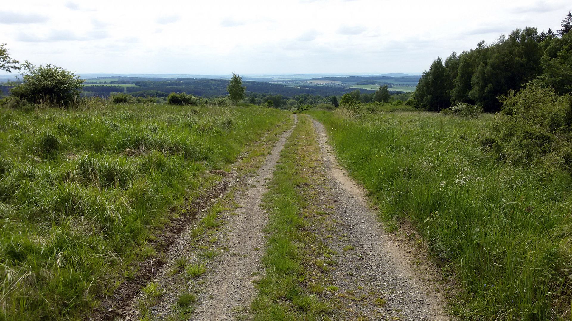 Z Chválovy vyhlídky (u Kolvínského jezírka) je vidět západním směrem až za hranice Středních Brd.
