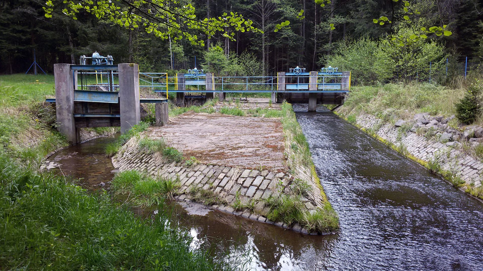 Místo pro odběr vody z Padrťského potoka nad loveckým zámečkem Tři trubky.
