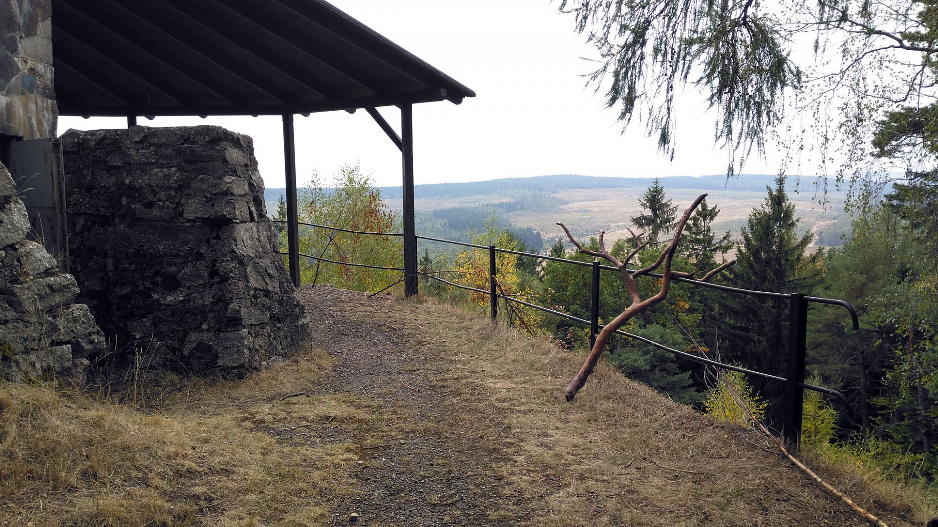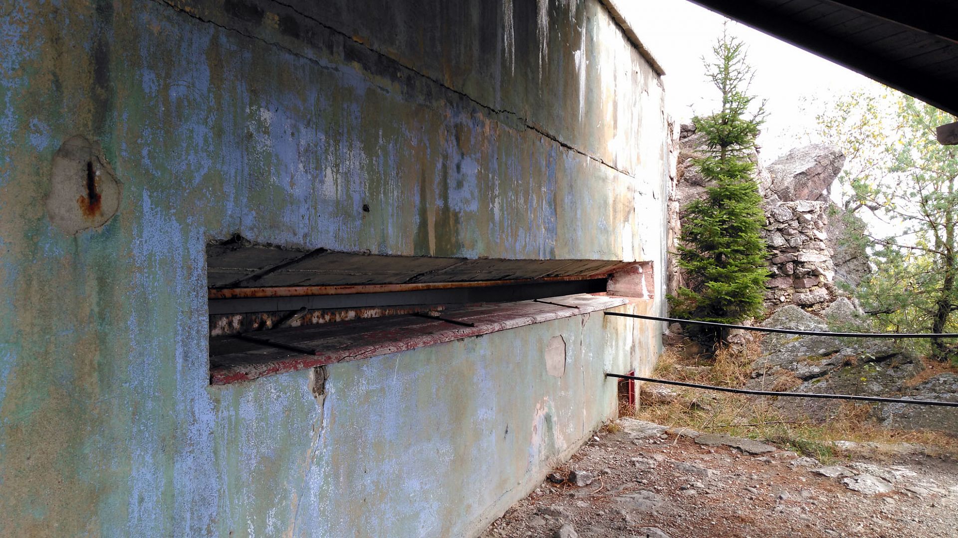 Součástí kontrolně-pozorovacího stanoviště Hřebeny je i zodolněný betonový úkryt s odolností pro ráže 152 mm.