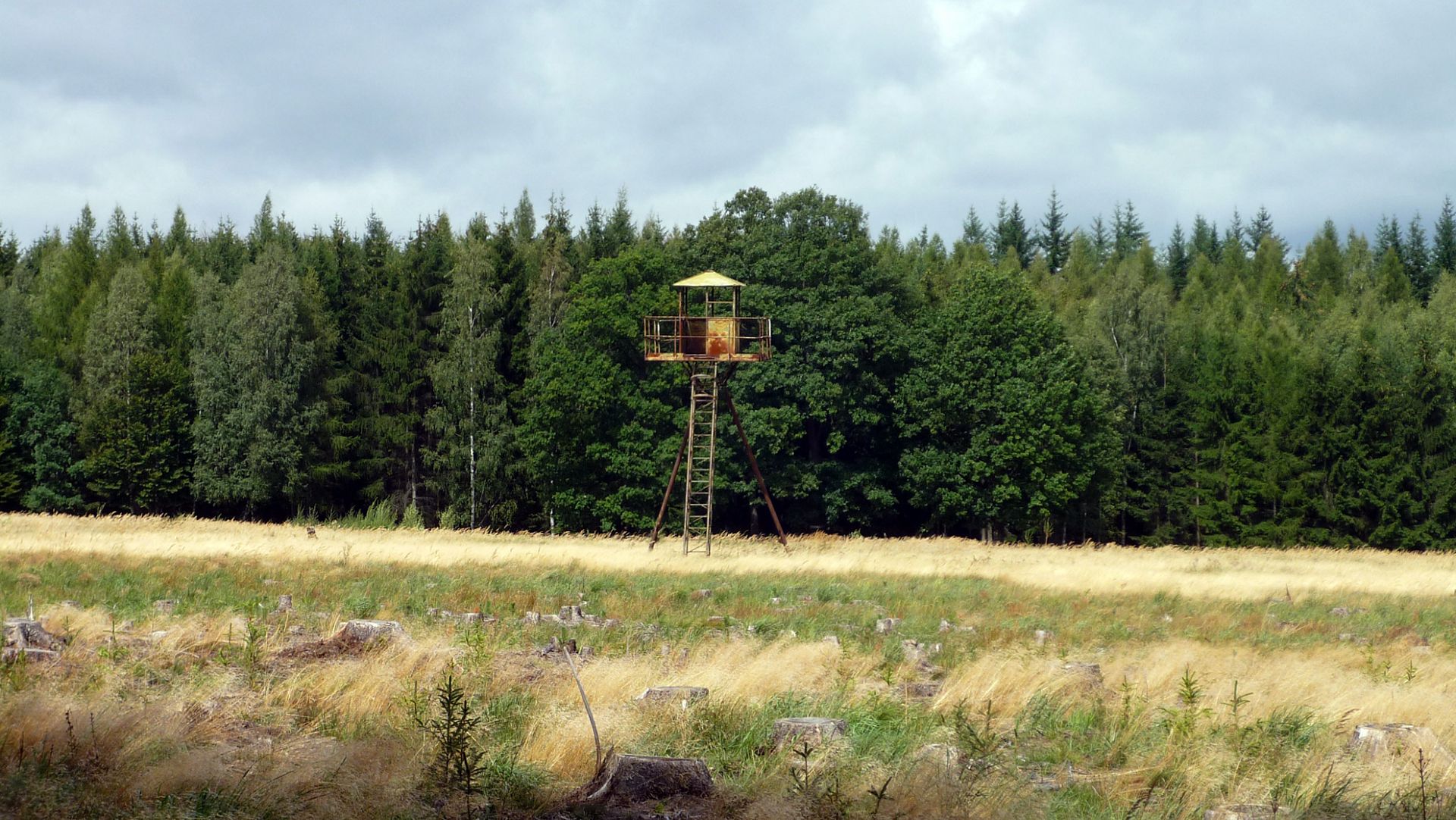 Louka pod vrchem Špičákem ve Středních Brdech - patrně využívána jako palebné postavení. (Neověřeno)