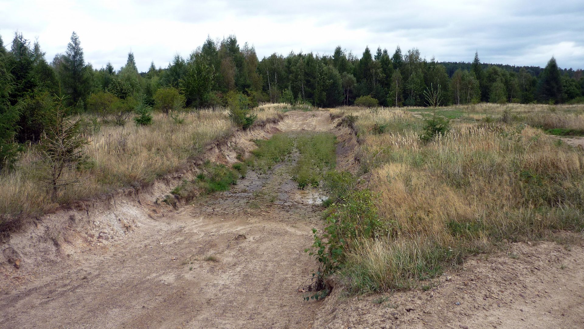 Louka u bývalé obce Hrachoviště ve Středních Brdech - patrně využívána jako cvičiště řízení vozidel v terénu a jako palebné postavení. (Neověřeno)
