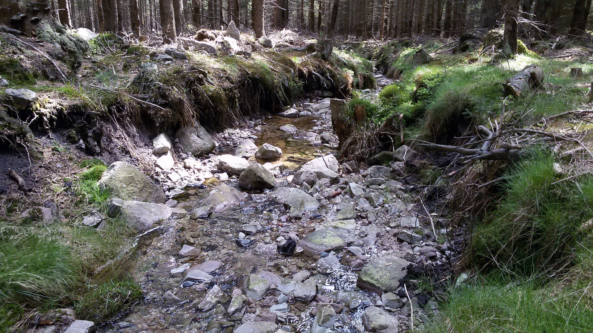Pilský potok pramení v údolí mezi Bohutínským vrchem a Brdci.
