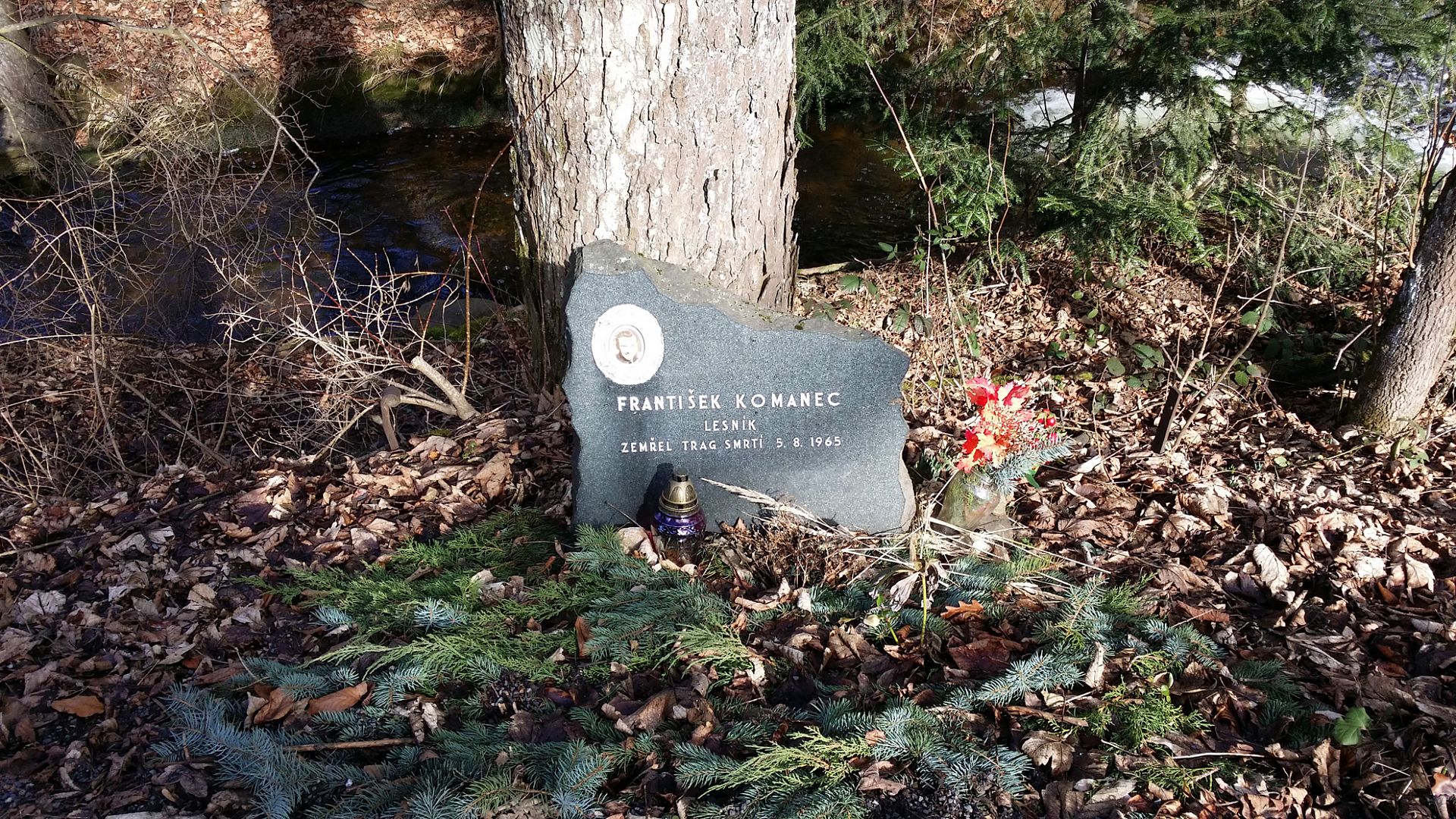 Pomník - lesník František Komanec, zemřel tragickou smrtí 5.8.1965
