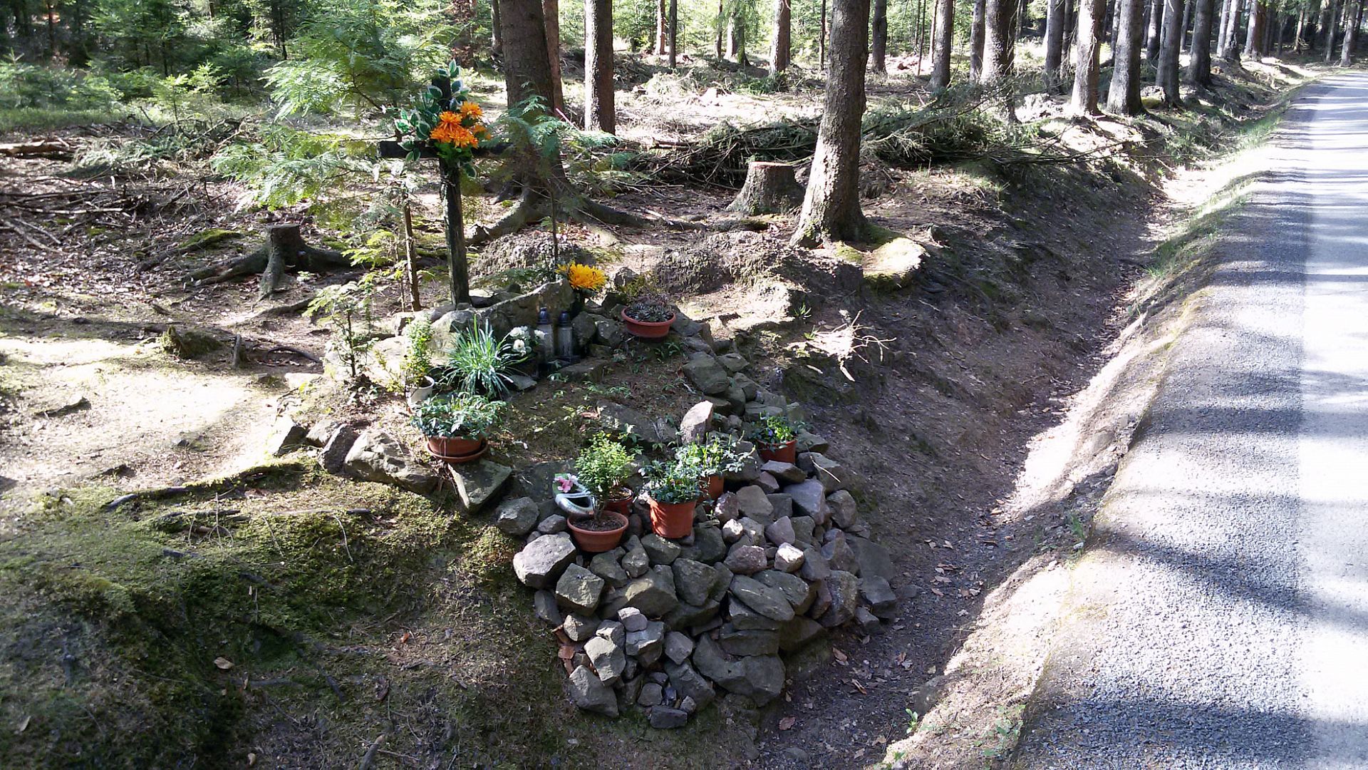Pomník/Kříž u Svaté Dobrotivé stojí hned u cesty do Zaječova.