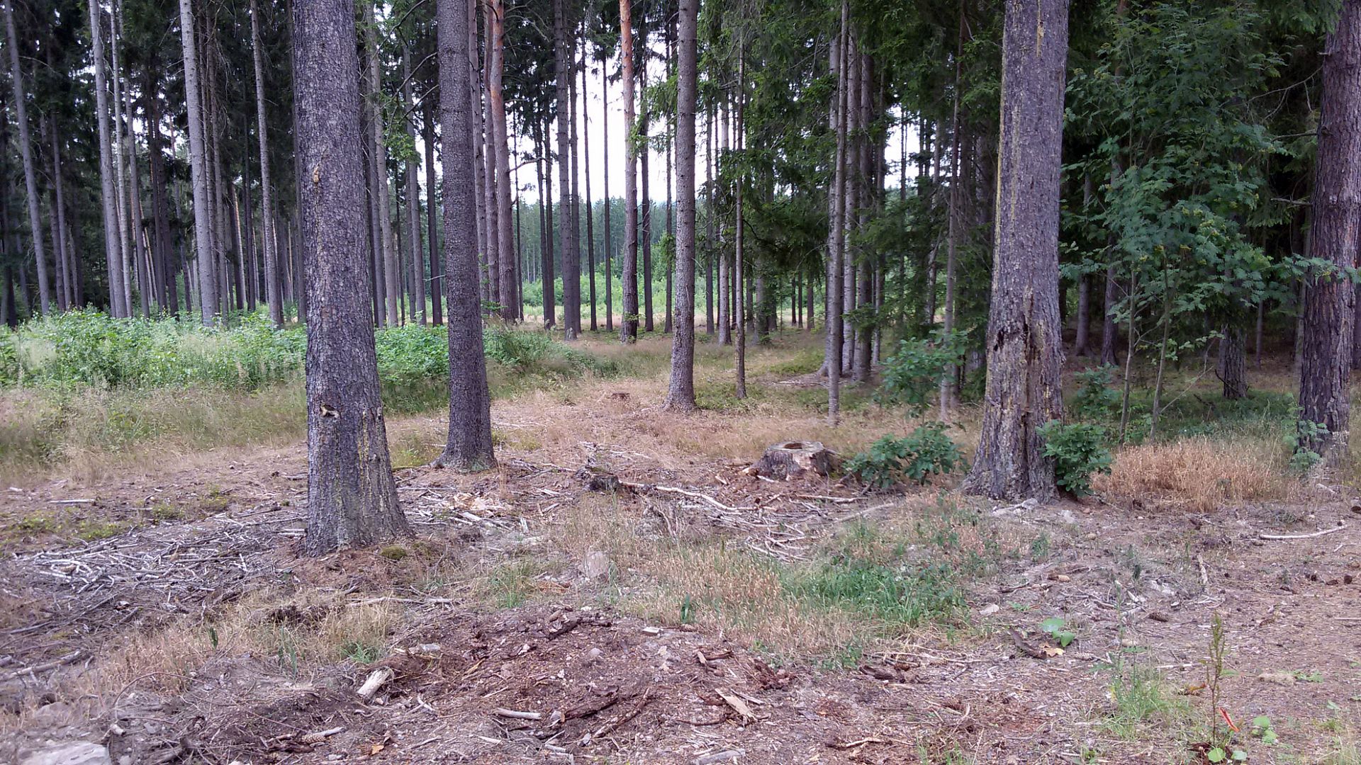 Místo bývalé štoly/sachty skořického příkopu 2 - pozůstatek po těžbě černého uhlí na mirošovsku. Pozice je přibližná.