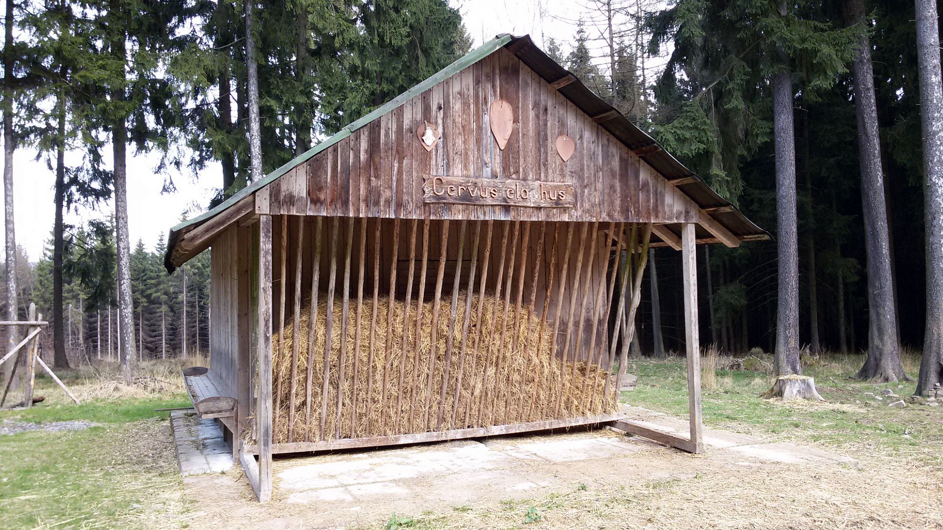 Seník Cervus elaphus ve Středních Brdech u obce Skořice.