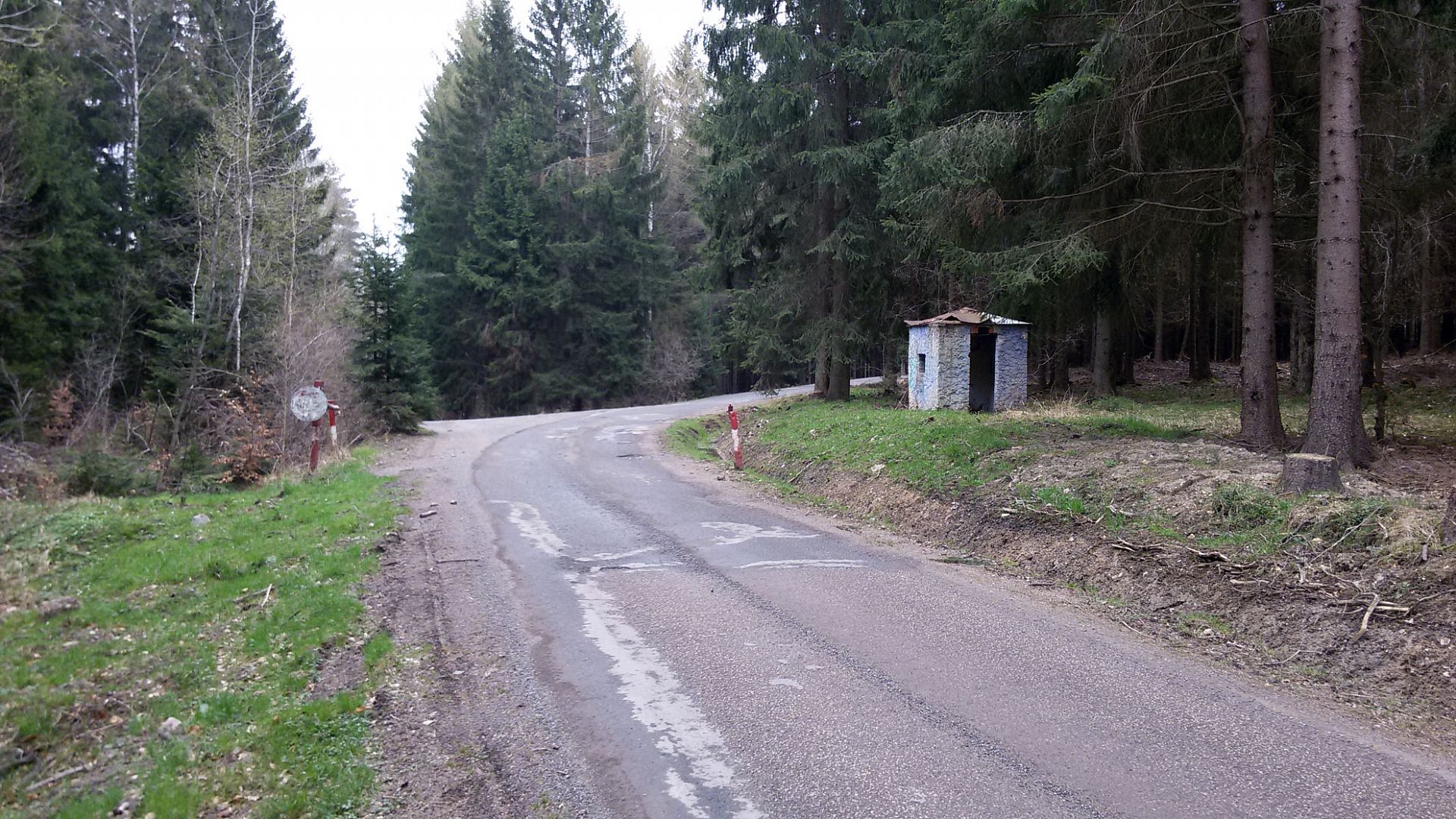 Místo zvané U Vojáka, kde se nachází strážní budka a dvě závory.