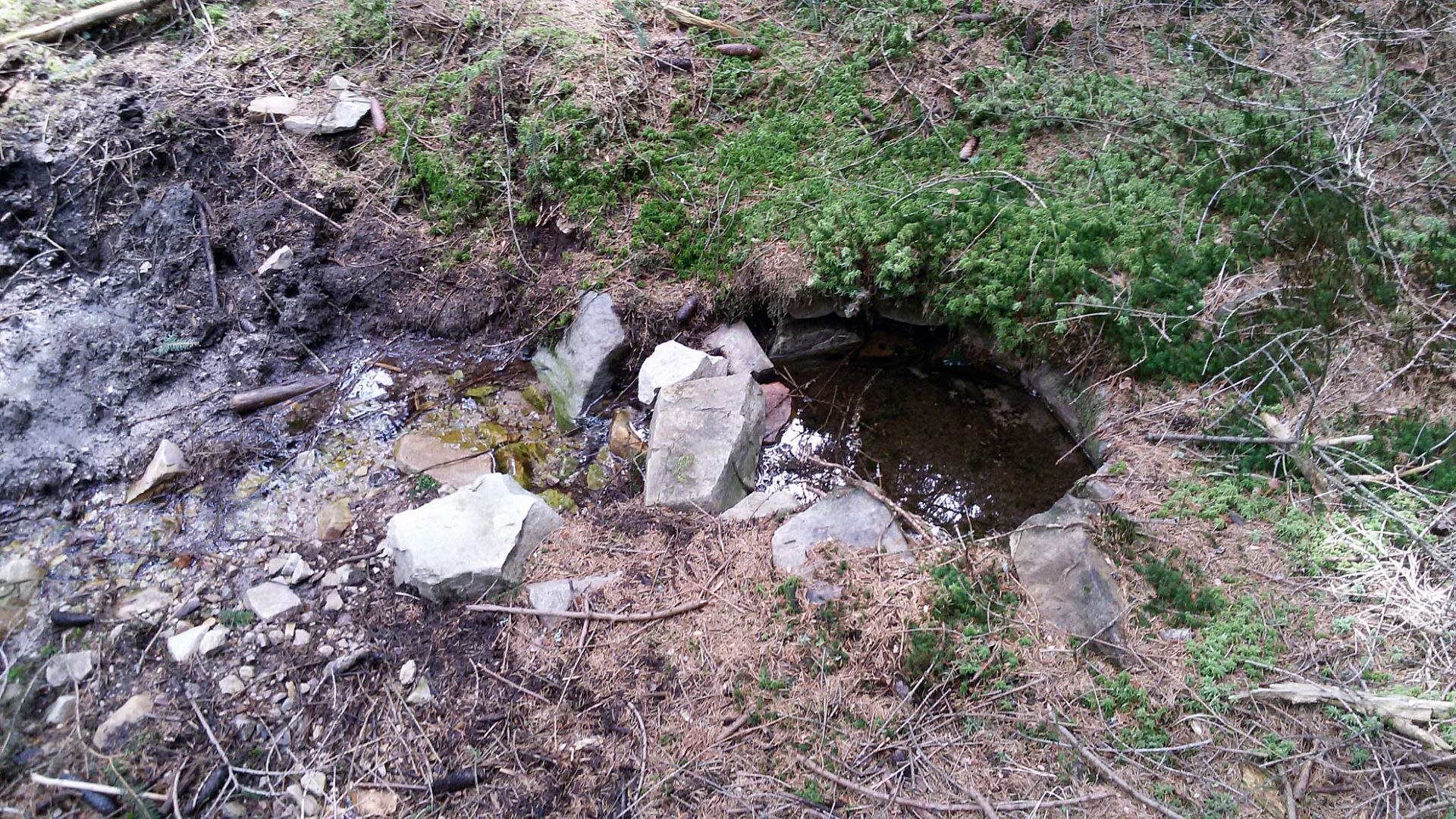 Uhlířská studánka ve Středních Brdech - její poloha je 1,1 km severozápadně pod Březovým vrchem. Po její opravě na podzim 2015 vypadá voda velmi čiště a pitně.