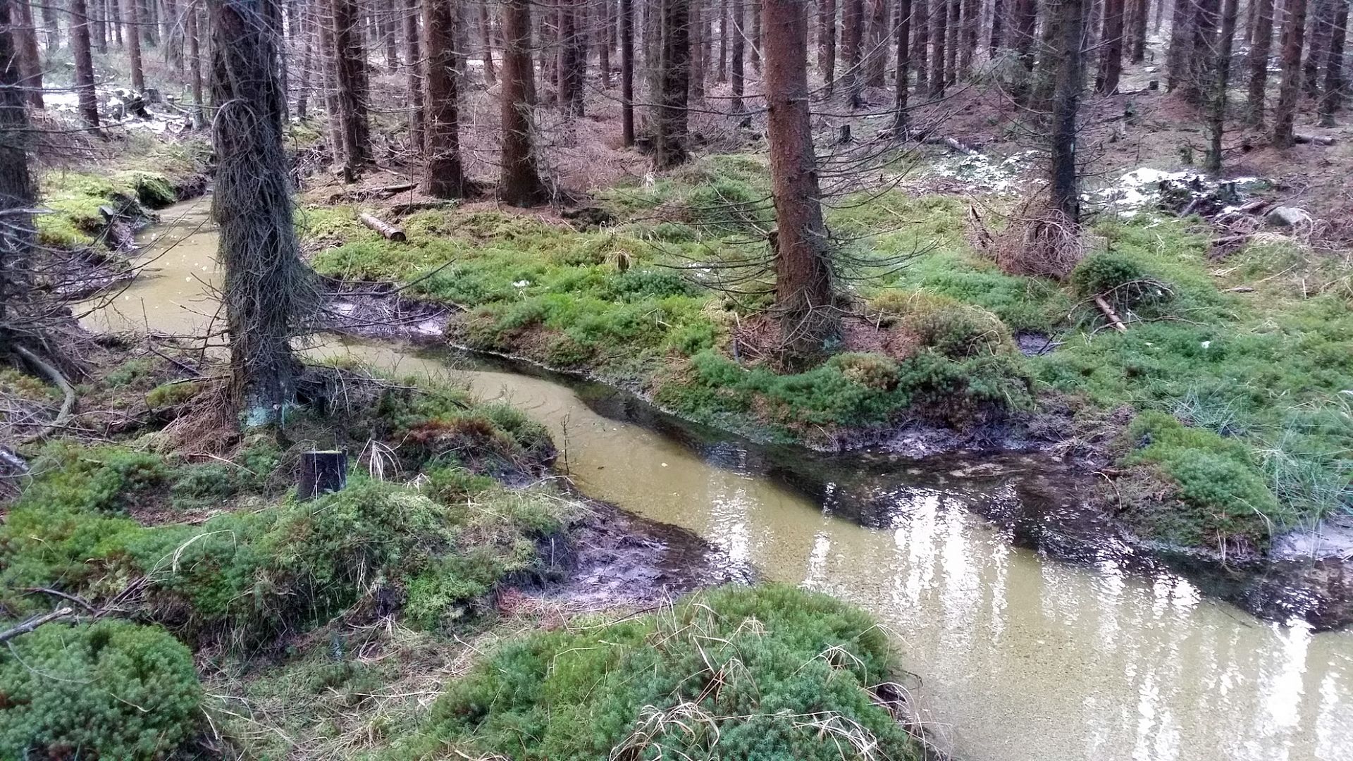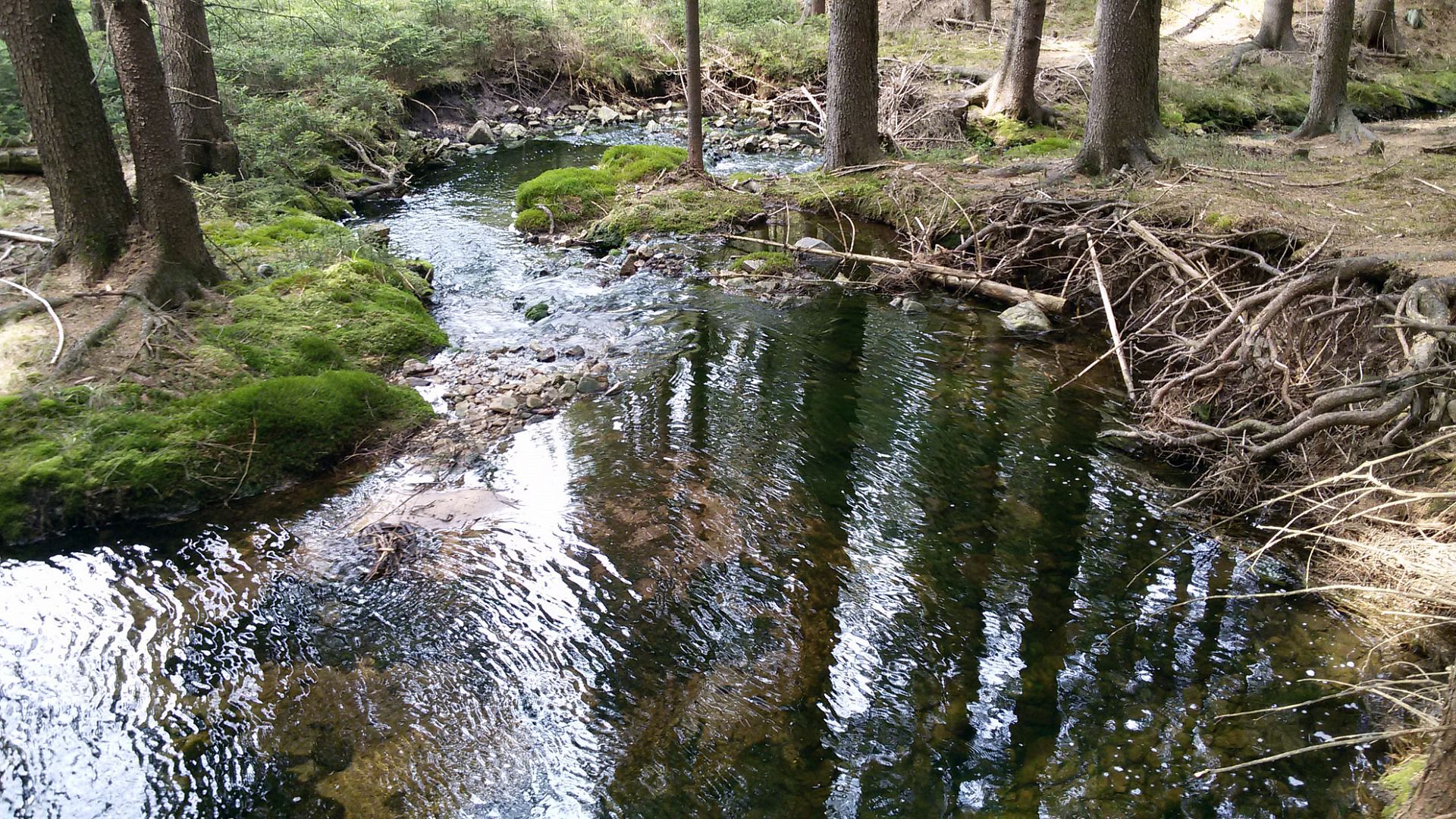 Půvabný Voložný potok pramení v údolí "Temná smrčina" mezi vrchy Praha a Malý Tok.