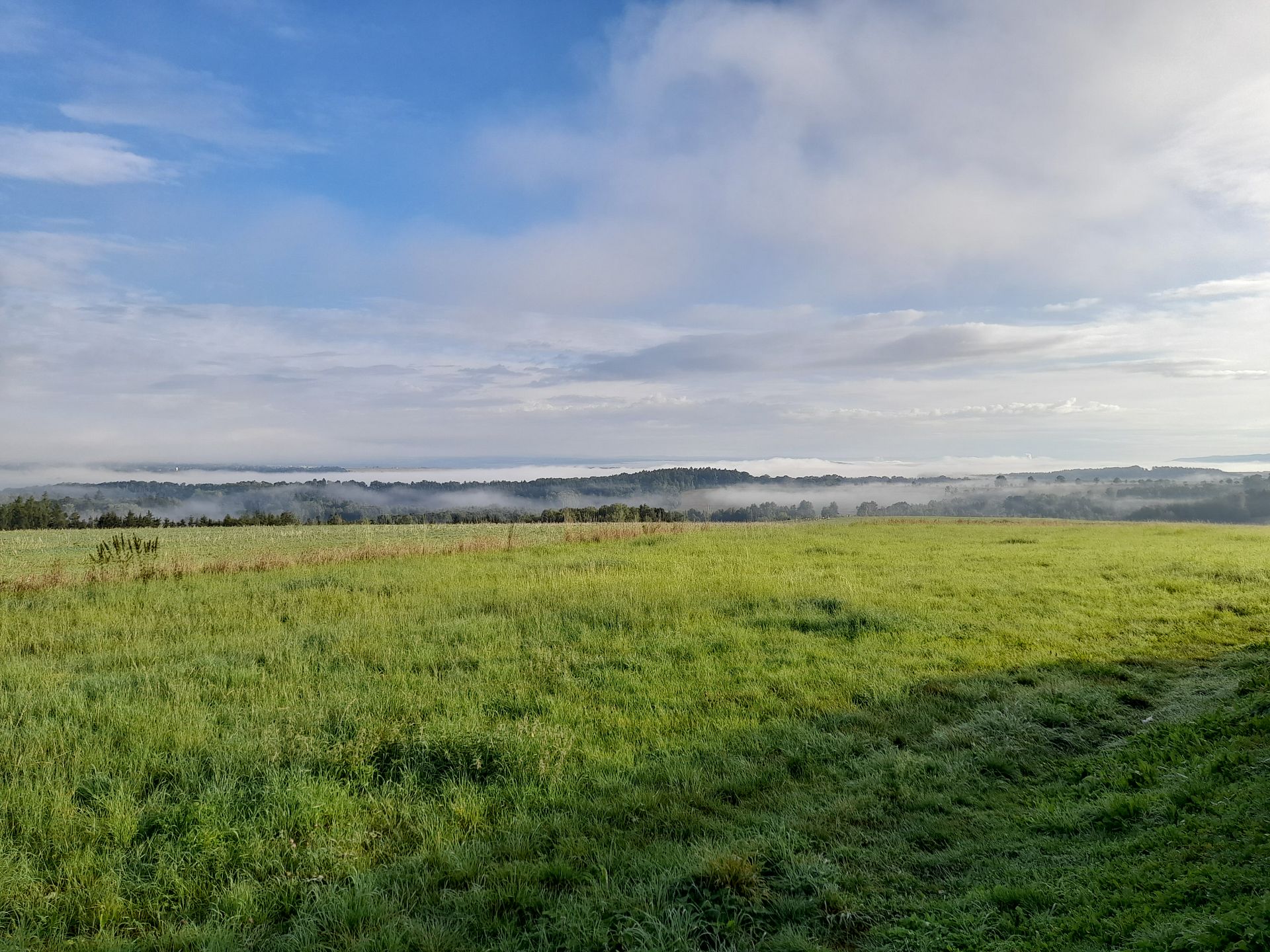 Ráno v 5:25 odjezd vlakem z Rokycan, v Plzni přestup na přímý spoj do Chebu kam jsme dorazili cca v 7:40 (bez zpoždění). Cheb nás uvítal mlžným oparem, kromě povinného vyfocení náměstí jsme se rovnou vydali směrem na Dyleň po kombinaci turistické červené trasy a cyklostezek. Jak jsme vjeli do Českého lesa, tak na mě zapůsobila zdejší příroda, klid a atmosféra - připomnělo mi to časy, když byli Středí Brdy ještě vojenské a oficiálně se do nich nesmělo - liduprázdno a husté vlhké jehličnaté lesy.... Navíc všude u cesty rozstl jeden hřib za druhým. Vrchol s televizním vysílačem je pochopitelně oplocený, takže došlo pouze na focení a jeli jsme dál. Projeli jsme přes Slatinský les, objeli vrchol Tišina, nafotili rybník Kajetán a už jsme byli na konci Českého lesa v Broumově. Někdy určitě budeme chtít pokračovat Českým lesem dále podél hranic směřem na Havran, Rozvadov a Čerchov, na to ale teď nebyl prostor...