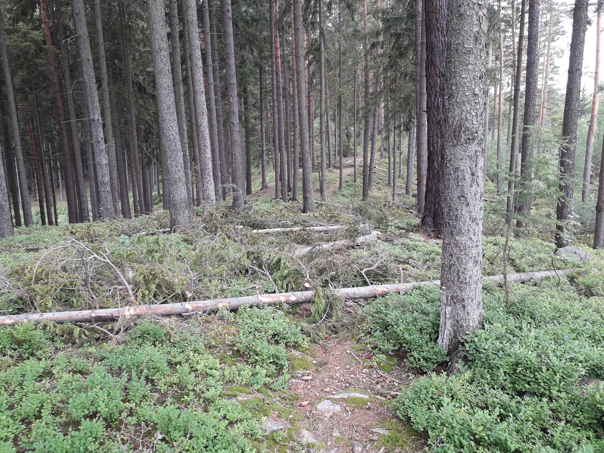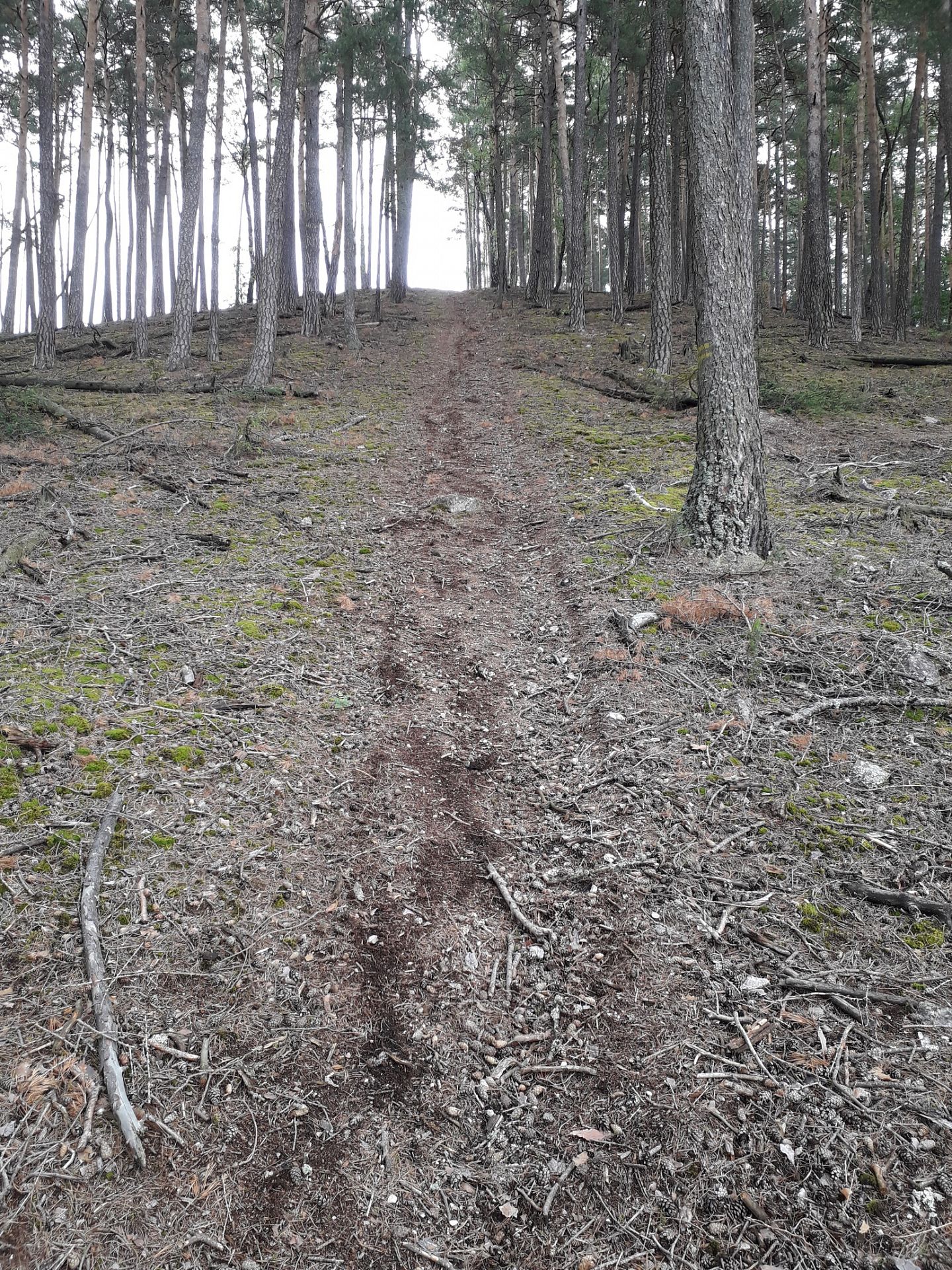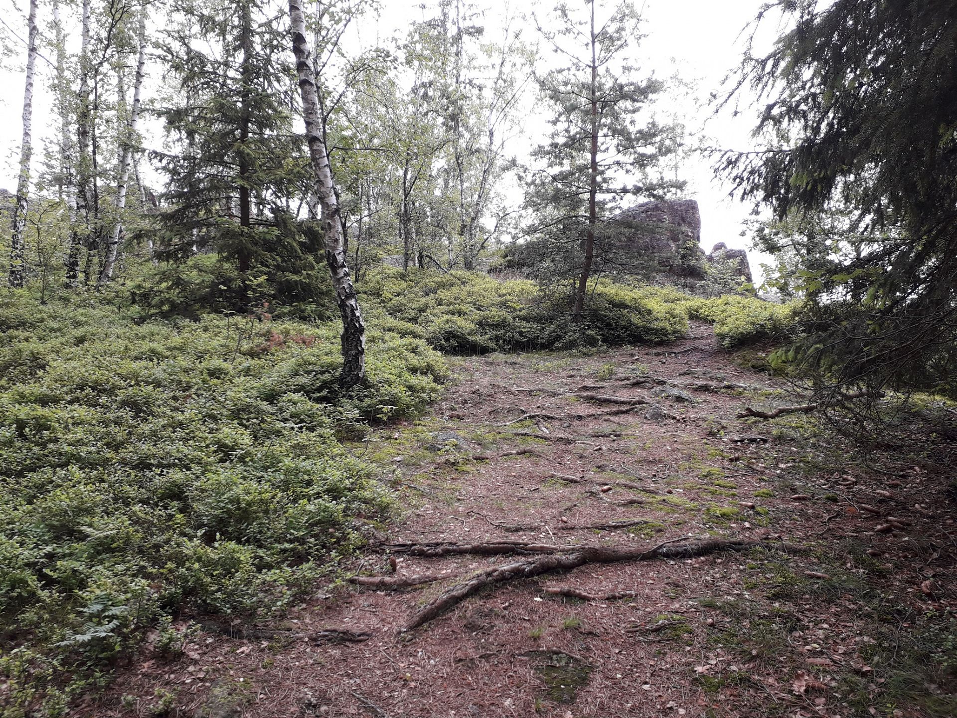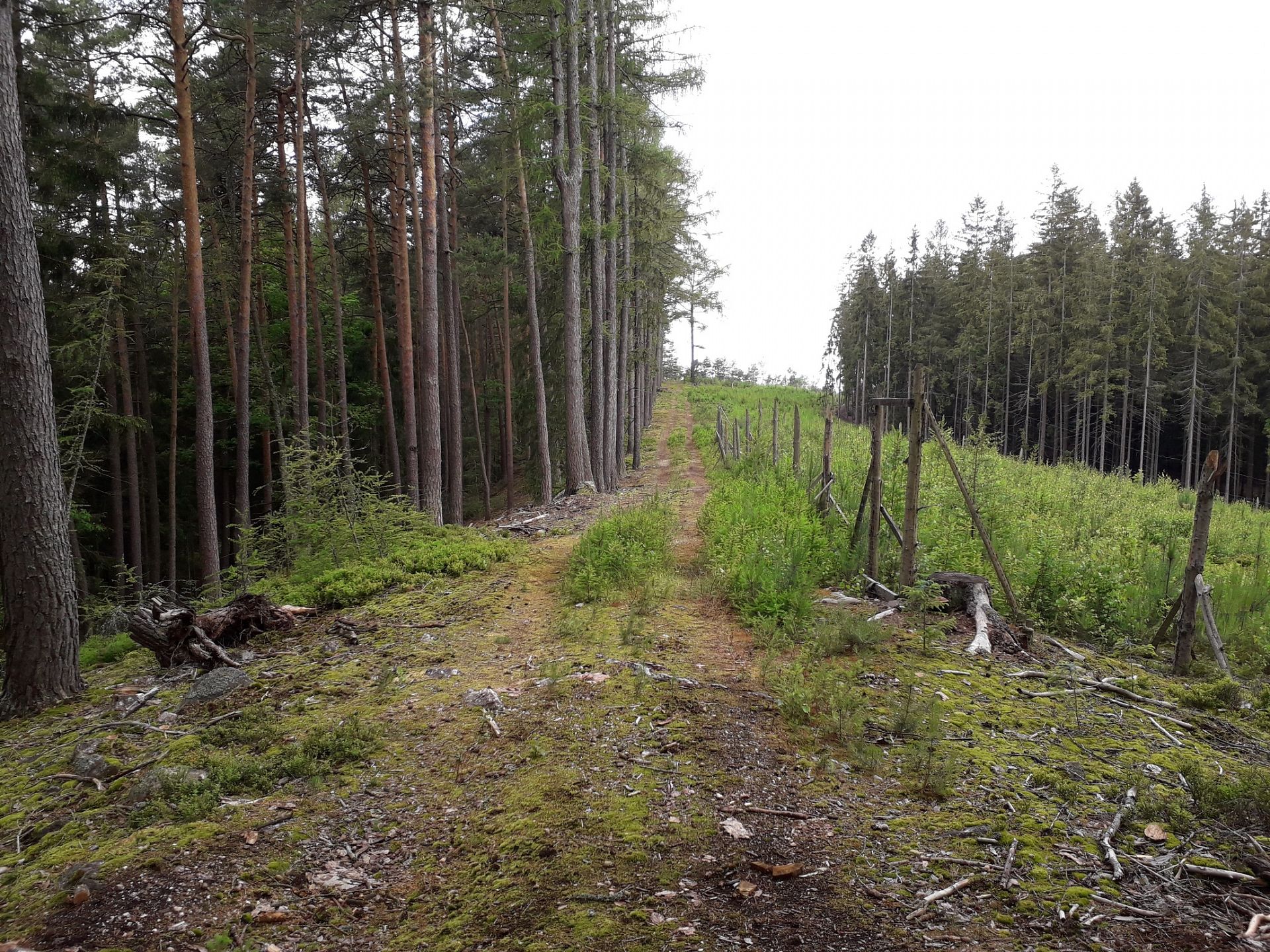 <p>Cestička na Velký Kámen asi dost vadí místnímu hajnýmu, protože je schválně před cílem zaházena uřiznutými kmeny a větvemi. Jinak by se jedna o příjemný trail. Trail po traverzu vrchu Vlč se jede příjemně, avšak na kótě 606 téměr zmizí. Následuje prudký sešup dolu (možná nejprudší široko daleko) a cestička rovněž mizí v bujné vegetaci.</p>