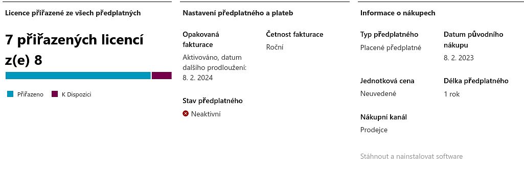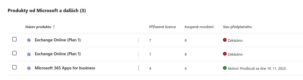 Docela složitě jsem pátral, co stojí za chybou. Dospěl jsem k závěru, že něco nehraje u služby Exchange Online (Plan 1). Zobrazuje se divná informace, že je Stav předplatného neaktivní. Nic tam nebylo napsáno o tom, že je třeba službu prodloužit, co dále dělat atd... Něco jako "Nemáš zaplaceno, nejdou Ti emaily. Zaplatit/objednat můžeš zde". Jelikož tedy nebylo zřejmé, že tuto službu opravdu potřebuje a zákazník by ihned zaplatitl za něco, co neví zda je nutné, tak bylo třeba pátrat, zda je toto ten skutečný problém.