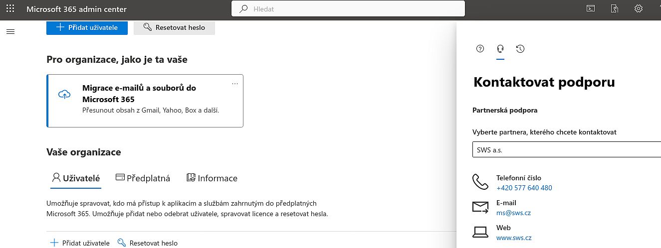 Sháněl jsem se jak kontaktovat podporu Office 365 a nikde jsem nenašel telefon, ani email. Našel jsem však fígl, když stačí v Microsoft 365 admin center dát vlevo Nápověda a podpora, následně napsat nějaký nesmysl do formuláře, dát odeslat a pak se dole zobrazí Kontaktovat podporu a následně Nový servisní požadavek Microsoftu.