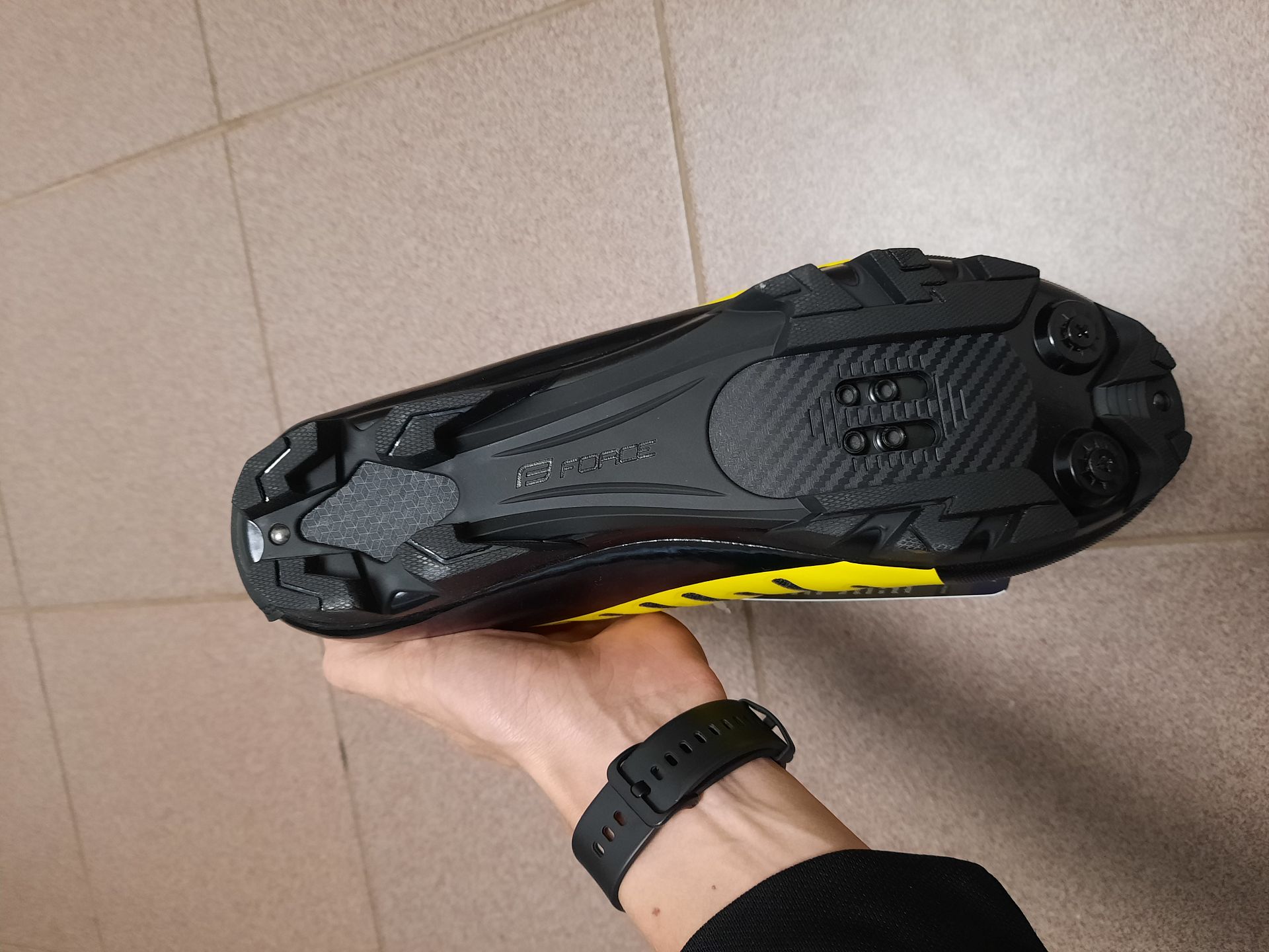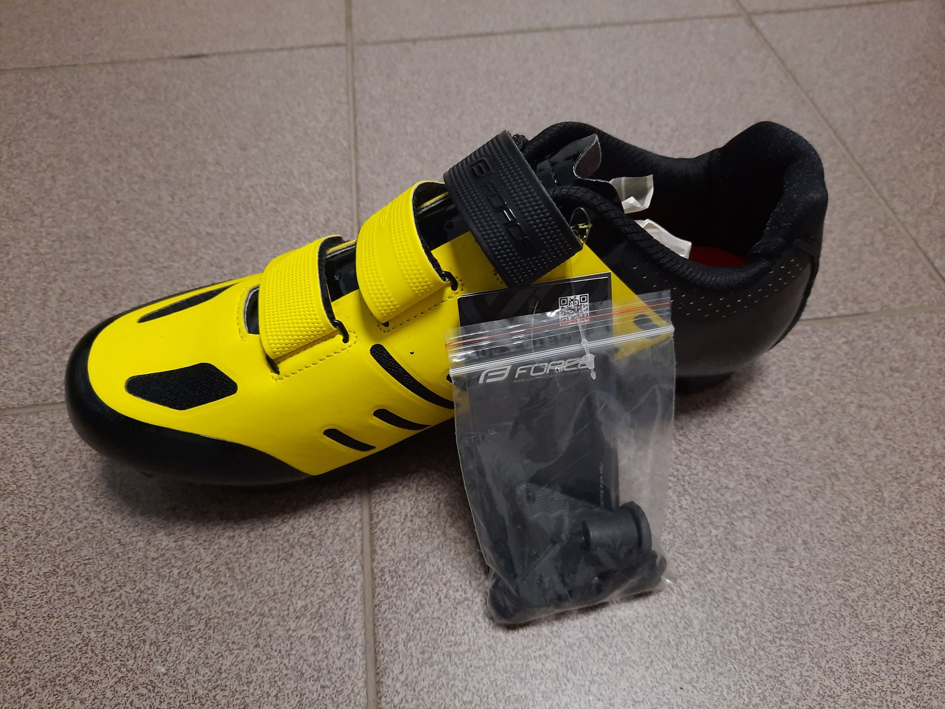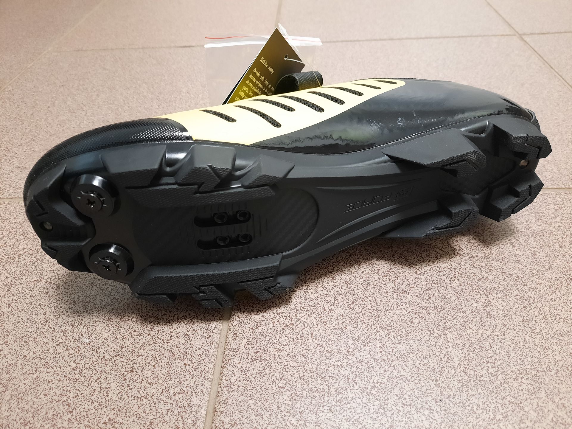 Při nákupu věcí na kolo jsem narazil na to, že lze zakoupit cyklistické tretry za cca 800 Kč, což mě mile překvapilo a zkusil jsem Force MTB Tempo fluoritovo-černé objednat. Co je hodně zajímavé, tak kdybych chtěl čistě černou variantu, tak bych si musel připlatit 400 Kč.
