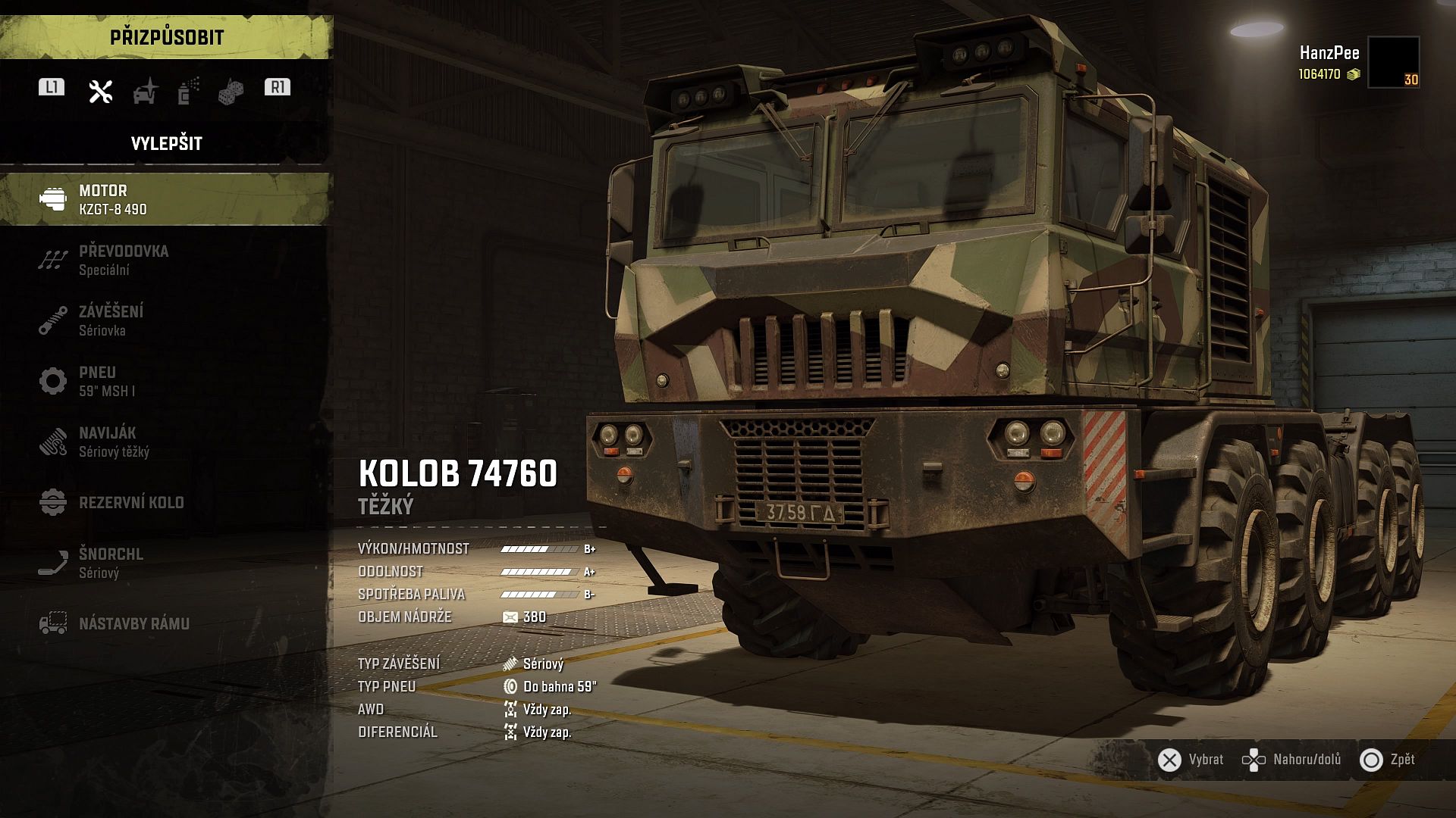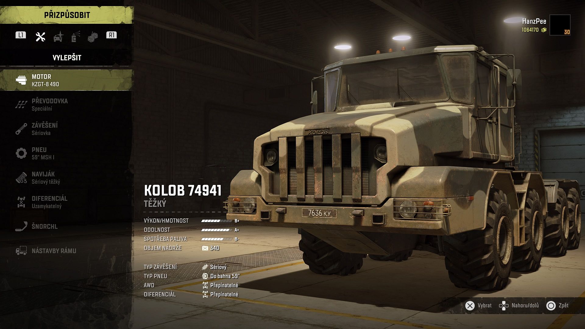 - dokud nemá vylepšení se zvýšeným podvozkem a 4WD, tak moc náročný terén neprojede