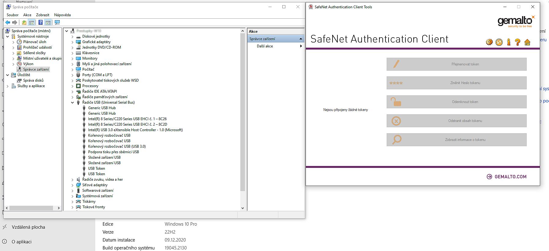 Token Gemalto SafeNet eToken 5110 není vidět (postsignum)